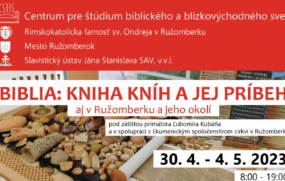 Po úspechu výstavy biblických artefaktov a cyklu prednášok vo Vranove nad Topľou sa podobné podujatie pripravuje aj v Ružomberku. Viac o akcii vo Vranove sa dozviete tu. Centrum pre štúdium biblickéh...